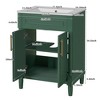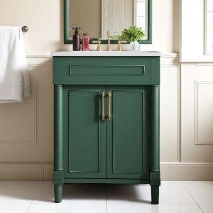Add charm and efficiency to your bathroom with this 24"" Bathroom Vanity featuring a beautifully integrated ceramic half-moon sink. Ideal for small bathrooms and powder rooms, this compact vanity delivers a blend of elegance, durability, and practicality. The green painted finish complements both contemporary and rustic décor, while the high-quality materials ensure long-lasting performance. Complete with an adjustable interior shelf and stylish metal hardware, it brings functionality without compromising on style.