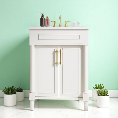 24" Bathroom Vanity with Ceramic Sink aa??Compact Cabinet with 2 Doors, Adjustable Shelf, Solid Wood Frame, Soft-Close Hinges