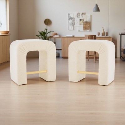24" Boucle Armless Inverted U-Shaped Stool Set of 2 with Soft Upholstered Seat for Home Kitchen Island or Dining Area