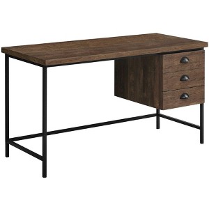 This 24-inch brown and black computer desk with three drawers will help to turn your office space into an executive suite. With a classic shape and style, this well made rectangular desk is a stylish way to keep your office space looking good. Multiple drawers give this desk plenty of hidden storage for your office essentials. Forged with premium craftsmanship and design, this desk is built to last. 30-inch H x 23.75-inch W x 55.25-inch D