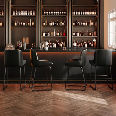 (Modern & Comfortable Design): The Boyne Counter Stool features a sleek, contemporary design with a bucket-style seat upholstered in stylish black faux leather, offering both comfort and chic appeal.