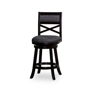 24" Counter Height X-Back Swivel Stool, Espresso Finish, Charcoal Fabric Seat