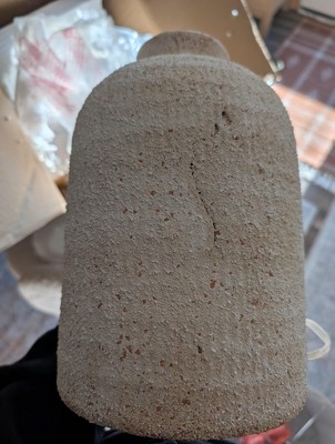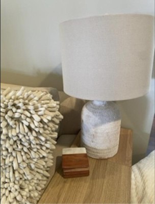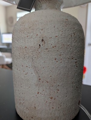 This is a perfect distressed terracotta lamp which, provides a perfect combination of natural material. The base is solid and packaged well. Very easy to assemble. Great purchase, highly recommended.
