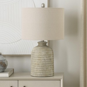 Add rustic charm to your home with this farmhouse table lamp. The textured ceramic base in a neutral finish brings warmth and character, while the classic drum shade offers soft, inviting light. Perfect as both a functional light source and a stylish statement piece, it complements living rooms, bedrooms, or entryways with timeless appeal.