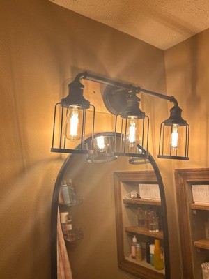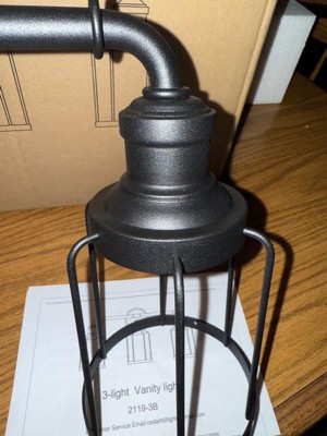 [This review was collected as part of a promotion.] I got this Cedar Hill vanity light for my daughter. It's absolutely beautiful and I know it will set her master bathroom off. It has 3 lights that are made with a black metal cage design that gives you a retro look. You can install it upwards or downwards according to your preference. This light is perfect for vanity, bathroom, foyer, hallway, kitchen or just any room you would want to put it in.