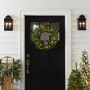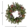 Ready any mantel or front door for the holiday season in seconds with this must-have wreath. Made to mimic the real thing, this plastic wreath stays green year after year, with no watering or preserving needed, and can be used both indoors and covered outdoors. Dotted with frosted pine cones and festive red berries for a traditional touch, it's also pre-strung with 50 white LED lights powered by three AA batteries (not included). Plus, it comes with a convenient plug-in design so you can turn it on and off at your leisure.