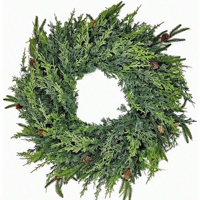 24 Inch Outdoor Winter Wreath Front Door Decor with White Berries Green Eucalyptus Farmhouse Porch Wall Home Decor initial standard
