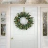 - Includes one artificial Christmas wreath with 99 branch tips and is pre-strung with 50 warm white LED lights and measures 24" x 24" x 5" - to power, install 3 AA batteries into the battery pack