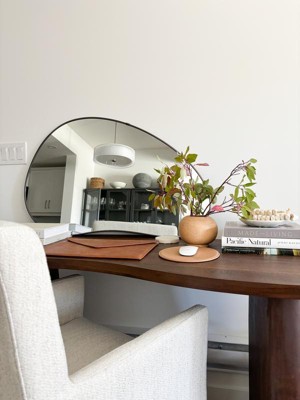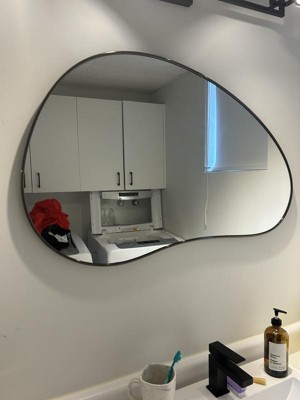 The Umbra Hubba Pebble Mirror has truly transformed my space. This mirror's organic shape adds a unique touch of elegance, making it a standout piece in my room. What's even better is its lightweight design, which made installation on my shallow drywalls a breeze. I'm beyond thrilled with this mirror's quality and aesthetic. Another feature is its ability to be turned in various directions. A definite winner for me.