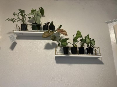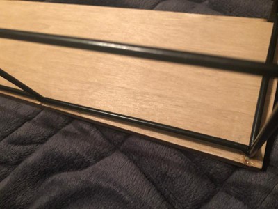 These shelves are not made of good quality. They looked rushed and poorly made. I plan on making a return. Not worth $50 at all. The wood was chipped. The black bars were uneven. Disappointed.