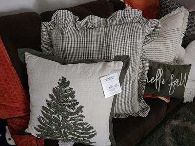 [This review was collected as part of a promotion.] I am obsessed with this oversized plaid pillow by Threshold. The green color is so beautiful and not too vibrant, definitely a more muted natural green. The pillow cover is removable which makes it so much easier to spot clean as needed. I love the ruffle hem details also. I was hesitant when I saw the price of this pillow but it is worth it!