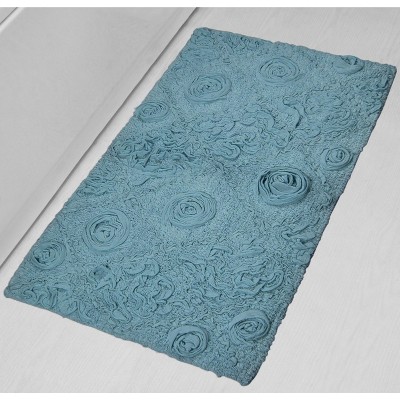 24"x40" Fantasia Bath Rug Collection Blue Cotton Shaggy Pattern Tufted Bath Rug - Home Weavers