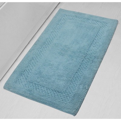 Product Name: 24"x40" Hampton Crochet Collection Aqua Cotton Reversible Tufted Bath Rug - Home Weavers