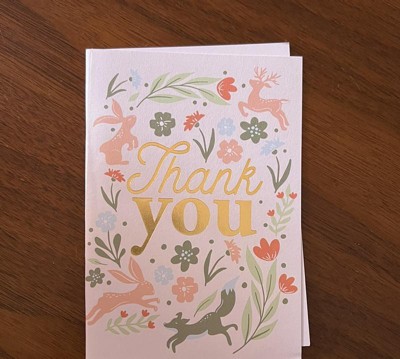 - Features designs of woodland creatures with a ‘Thank you’ message
