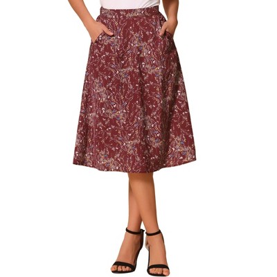 The perfect skirt for Spring and summer, featuring large pleats at the waist for a flared silhouette, a wide elastic waistband, and pockets on the side. This knee length womens skirt can easily go from casual to dressy with the right accessories. Made from a comfortable stretch and breathable material polyester spandex blend this style will be great for the warmer months of the year.