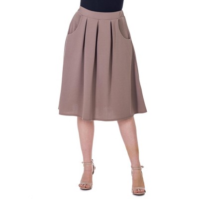 24seven Comfort Apparel Brown Geometric Print Knee Length Skirt