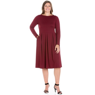 24seven Comfort Apparel Classic Long Sleeve Plus Size Flared Mini Dress