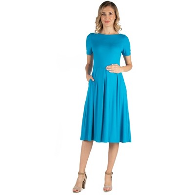 24seven Comfort Apparel Fit and Flare Sleeveless Maternity Midi Dress with Pockets-TURQ-M