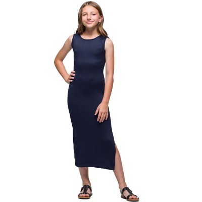 Oh so easy to wear, this simple tank swing dress for girls is cute and comfortable. Featuring a round neckline, sleeveless style, knee length hemline, and side pockets. Made from a soft material and available in a variety of fun color options. Machine washable.