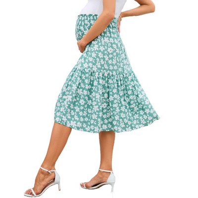 24seven Comfort Apparel Maternity Brown Animal Patchwork Print Maxi Skirt