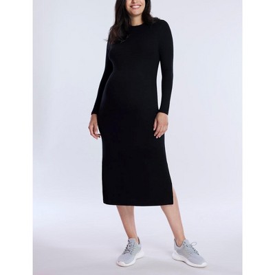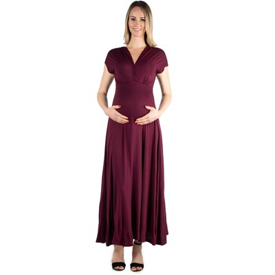 24seven Comfort Apparel Maternity Fitted V-Neck Side Slit Maxi Dress-Burgundy-3X