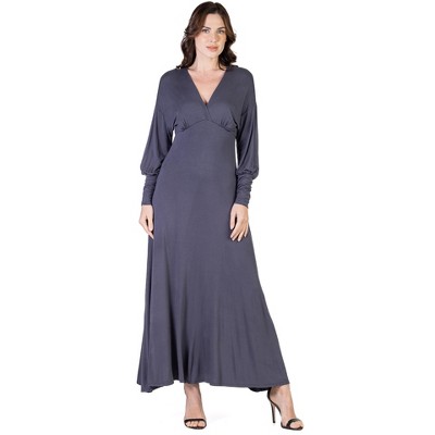 24seven Comfort Apparel Maternity Knee Length A Line Elbow Sleeve Dress-Charcoal-L