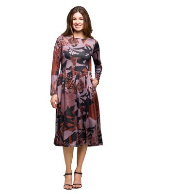 24seven Comfort Apparel Maternity Long Sleeve Midi Dress in Animal Print