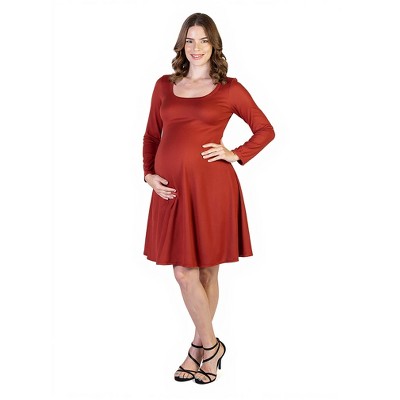 24seven Comfort Apparel Maternity Midi Length Fit N Flare Pocket Dress-Brick-3X