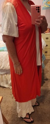 I adore these long swingy vests in BLACK, but I love black only, it turns out. (I did not love orange or white enough to keep them.) My long black vests are flowy and fun and they make me feel stylish. I have owned five (5!) of these vests in black for several years. I wear them constantly with a variety of black tops. They go with my maxi skirts AND with pants, almost everything. I decided to try out these vests in orange and white, but discovered that these lighter colors show every little bump in my figure and that are not nearly as flattering as black, so I did return both the orange and the white. I am 65 years old, and 5' 6" tall, and I weigh 220 pounds. Size 2X fits me fine. (Size 2X also fit me fine when I weighed quite a bit more; I have lost some weight recently.) I think that my black vests look best when I wear a black top underneath. I don't tend to like the look as much when the shirt underneath is a different color. These wash up great in the washing machine. (I wash my black items only with other black items so they don't collect or show fuzz.) I hang mine up on hangers to drip dry, but perhaps they would be fine in the dryer.)