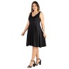 A: The dress has a stylish v neck design that enhances its chic appearance.
