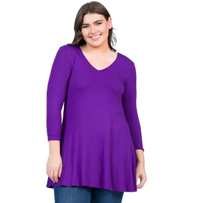 Plus Three Quarter Sleeve V Neck Tunic Top - 24seven Comfort Apparel™