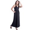 A glamorous piece good enough to replace that little black dress for parties, this sleeveless v neck maxi dress is the definition of both beautiful and practical with the addition of pockets. Featuring a sleeveless slim fit a line design, this dress is perfect for a special evening out. This v neck maxi dress is a versatile figure flattering must have in every closet. Made in the USA from a comfortable stretch material. Rayon Spandex Knit.