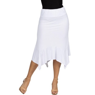 24seven Comfort Apparel Women's Maternity Elastic Waist Maxi Skirt-White-XL