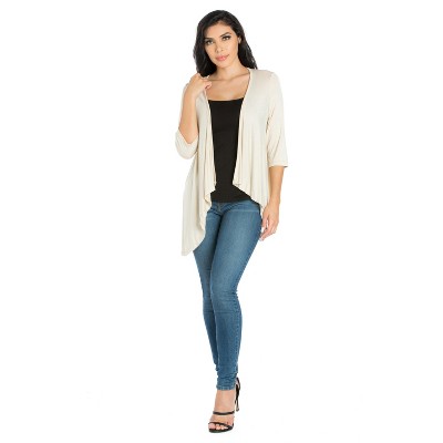 Create a stylish layered look with this open-front plus size cardigan. Featuring a cascading front shape, elbow length sleeves, and a loose comfortable shape. Available in 8 beautiful solid color options.The perfect way to complete any look!