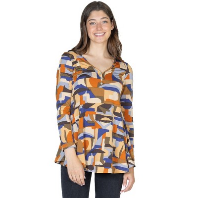 24seven Comfort Apparel Womens Black Tulip Print Elbow Sleeve Casual Tunic Top