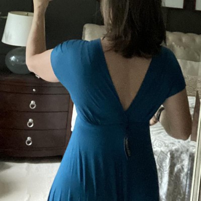 A formal look has never been so comfortable. With its regal full-length skirt this womens maxi dress makes for an elegant formal or casual look. Featuring a v-neck line and v cut on the back, cap sleeves, flared a line skirt, defined empire waist, and is made from a soft and comfortable stretch material in four beautiful year round colors and it is machine washable for easy care. The perfect dress to keep in your closet for any special occasions or just an eye-catching date night look. Made in the USA from a comfortable stretch material. 95% rayon 5% spandex.