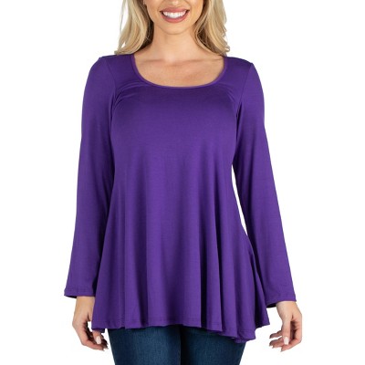 This stylish solid colored tunic top features a feminine print and a figure flattering design. The elbow length sleeves, scoop neckline, and swing top shape make it a go to tunic top in any closet. Perfect short sleeve tunic tops for leggings. Made in the