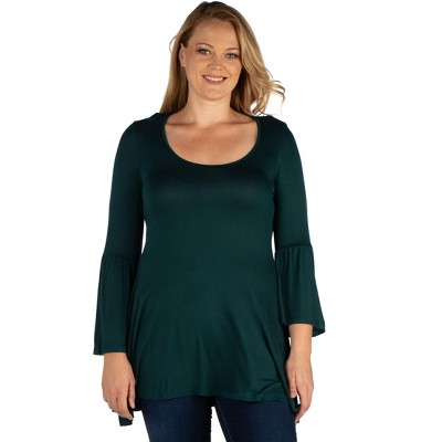 24seven Comfort Apparel Womens Long Bell Sleeve Flared Maternity Tunic Top-HUNTER-2X
