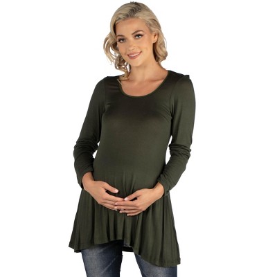 24seven Comfort Apparel Womens Long Bell Sleeve Flared Maternity Tunic Top