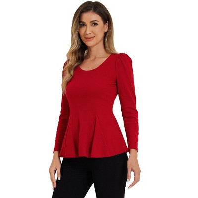 This tunic length long sleeve top combines comfort and style for a chic feminine look. The flared cut accentuates natural curves while the swing style hem, which reaches down to the hips, radiates flowing feminine elegance and allows for ease of movement. The scoop neck and soft, stretchable fabric make for easy pullover styling. Dress up any pair of jeans with this classy addition to the fall wardrobe. Available in a variety of solid colors.