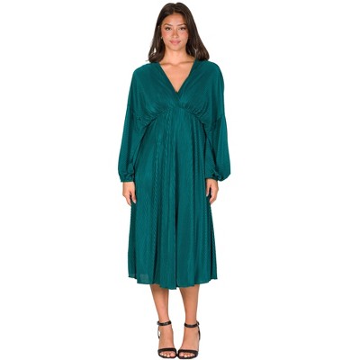 Womens Long Sleeve V-Neck Pleated Empire Waist Side Slit Maxi Dress - 24seven Comfort Apparel™