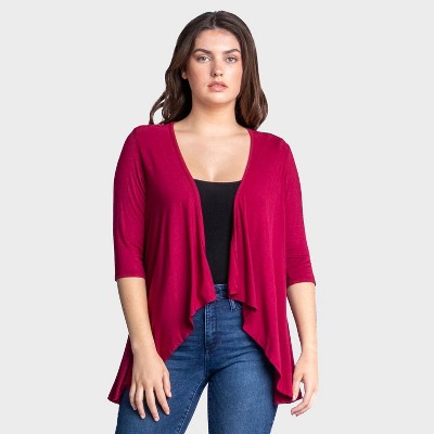 Create a stylish layered look with this open front plus size cardigan. Featuring a cascading front shape, elbow length sleeves, and a loose comfortable shape. Available in 8 beautiful solid color options.The perfect way to complete any look.