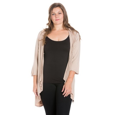 Plus Elbow Length Sleeve Open Cardigan - 24seven Comfort Apparel™
