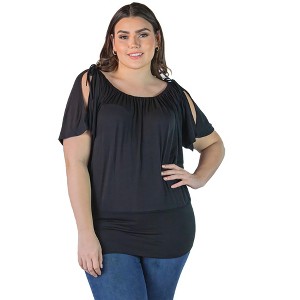 Plus Solid Color Short Sleeve Split Shoulder Top - 24seven Comfort Apparel™ - 1 of 4
