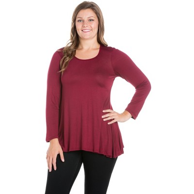 24seven Comfort Apparel Womens Ruched Sleeve Swing Plus Size Tunic Top