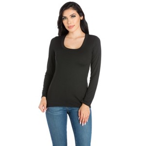 24seven Comfort Apparel Womens Solid Long Sleeve Scoop Neck Top - 1 of 4