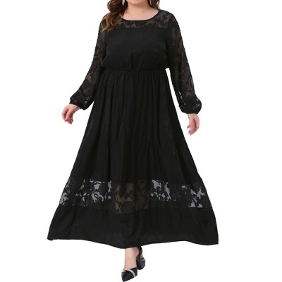 24seven Comfort Apparel Womens V-Neck Long Sleeve Maxi Dress-Black-XL
