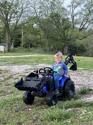 I was very disappointed with this purchase. The backhoe attachment on the back will not stay up. When riding you have to keep the trailer attached or it will drag on the ground. The front bucket attachment is so hard to latch back that my grandson cannot latch it and neither can I. It is very hard to latch.so he really cannot unlatch it