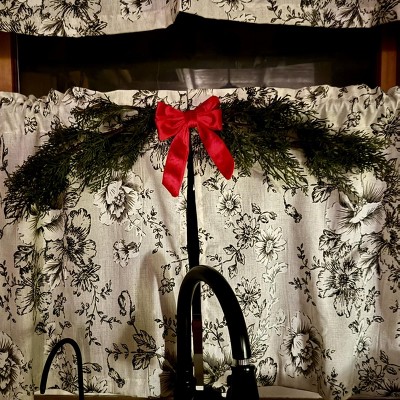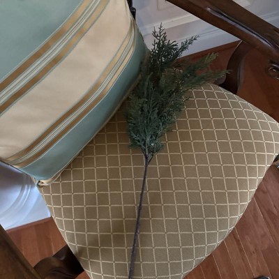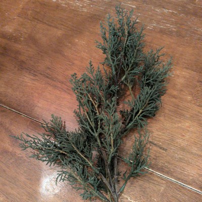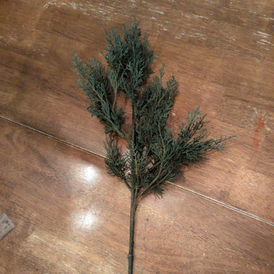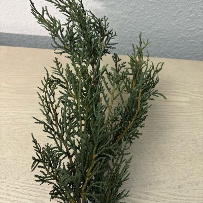 [This review was collected as part of a promotion.] This faux cypress stem by Hearth and Hand measures at about 2 ft in length. I was slightly surprised at how long the stem is. It has a slightly plasticky look but would look nice in a holiday setup for either a wreath or dining table design. It's not really a stand-alone product but should be combined with at least one more of its kind or some other holiday decor. It would make a nice addition to a holiday setup.