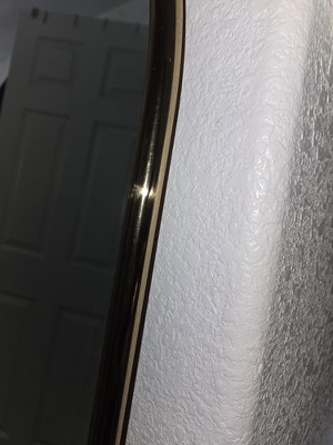 This Tube Floor Mirror from Threshold™ is a perfect fusion of sophistication and versatility. This leaning floor mirror boasts a metal frame in a gold finish to add luxurious charm to any space. Designed in an arched shaped, this floor mirror brings timeless appeal to your bedroom or living room and makes it easy to check your appearance before heading out.